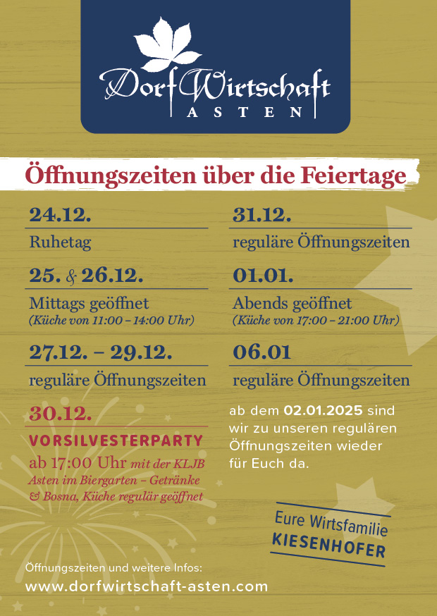 Genießen Sie ehrliche, regionale, bayerische Küche von der Wirte-Familie Kiesenhofer und Ihrem Team.
